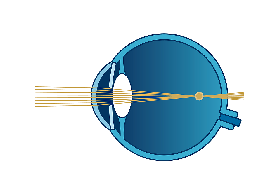 Anders als beim kurzsichtigen Auge kann die Hyperopie, auch Weitsichtigkeit genannt, bis zu einem gewissen Alter durch die Naheinstellung der Linse (die Akkommodation) ausgeglichen werden.